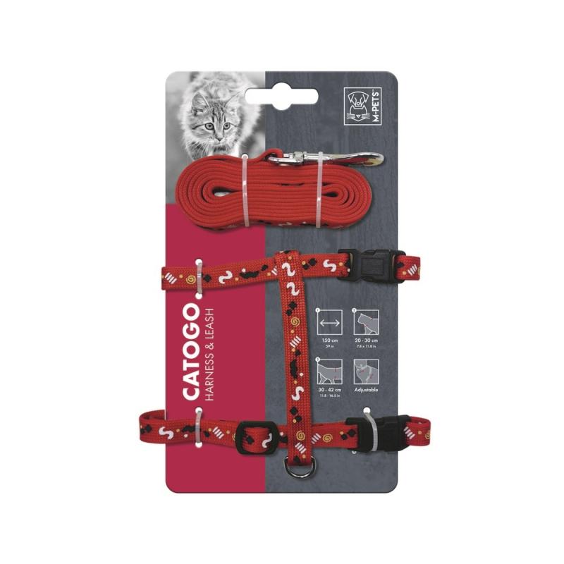 MPets Шлейка для кошек с поводком, 20-30 см, 30-42 см, 1 см*90 см - 170 см, красный