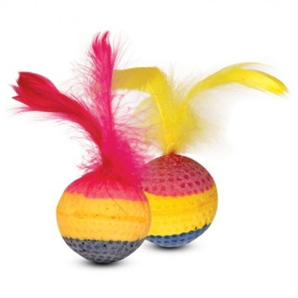 Triol игрушка для кошек Мяч трёхцветный с пером 4 см