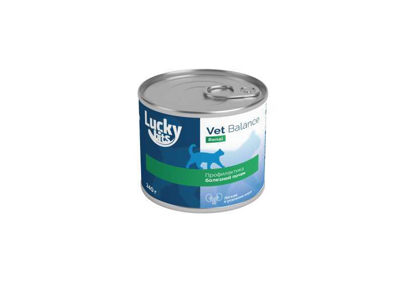 Полнорационный консервированный диетический корм при хронической почечной недостаточности и ее осложнениях у взрослых и стареющих кошек.