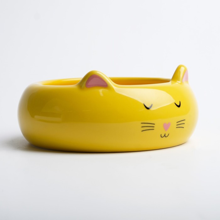 Сима-Лэнд Миска керамическая "Кошка-лепёшка", 13 x 5,5 cм, жёлтая