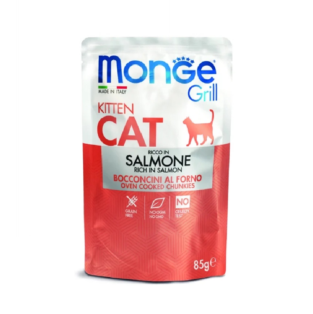 Полнорационный консервированный корм кусочки в желе с норвежским лососем для котят.
