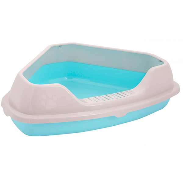 Туалет для кошек "Мур-мяу" угловой с бортом голубой