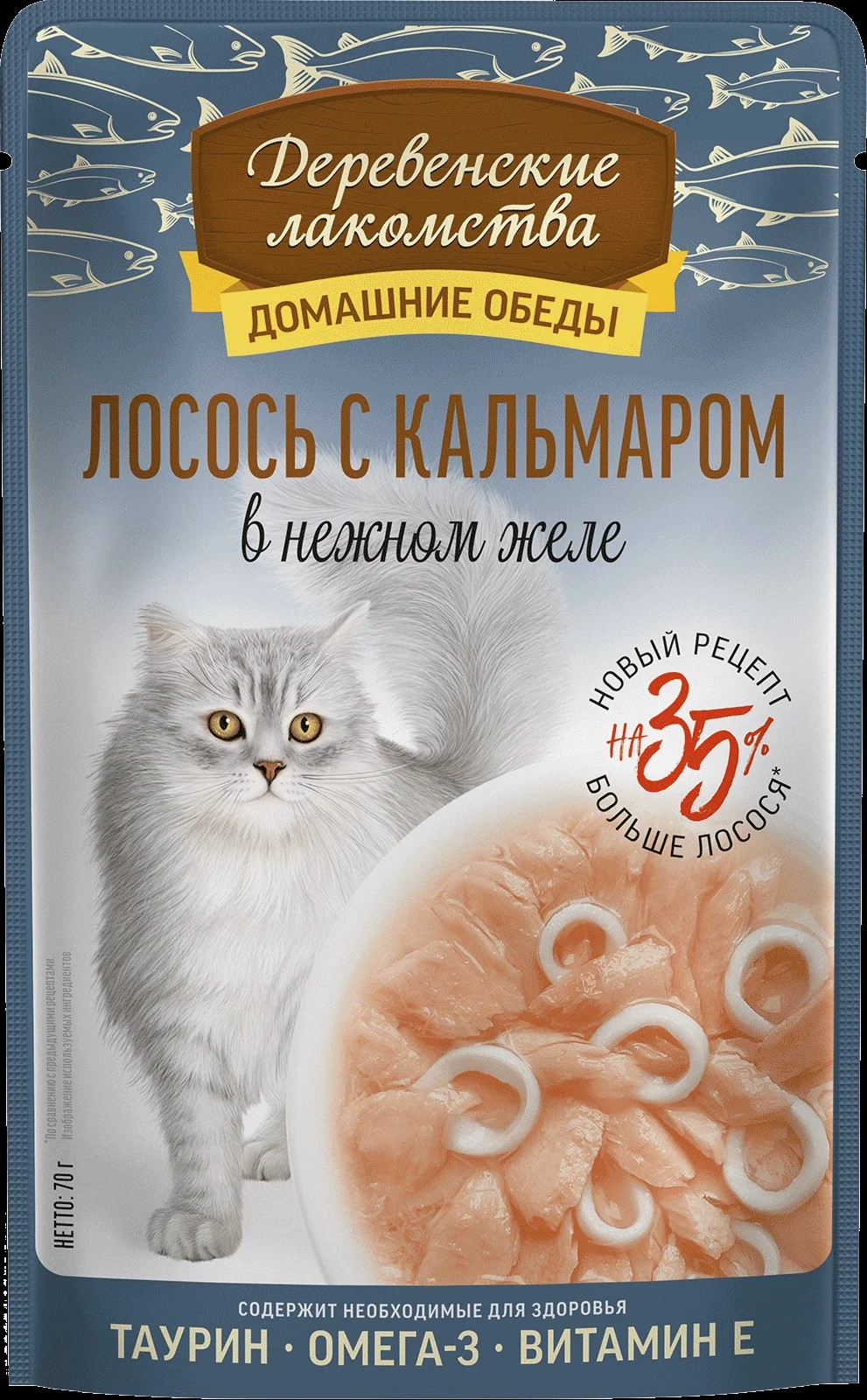 Деревенские лакомства корм для кошек Лосось с Кальмаром желе, 70 г