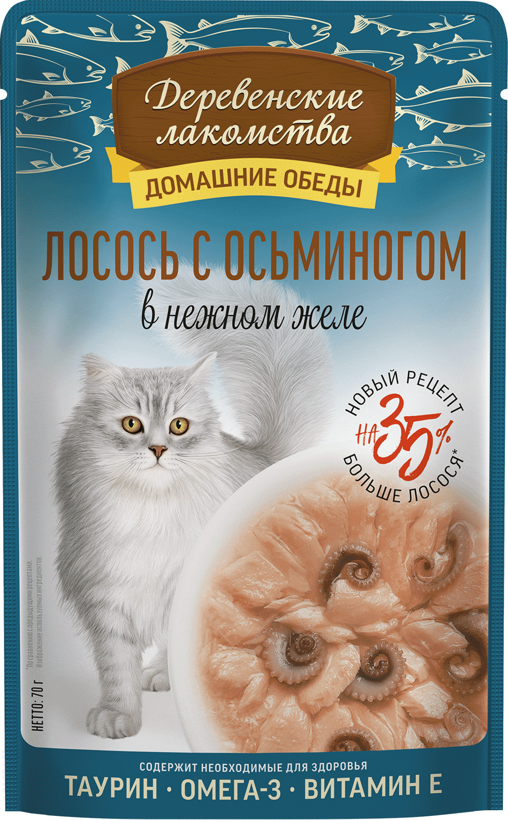 Деревенские лакомства корм для кошек Лосось с Осьминогом желе, 70 г