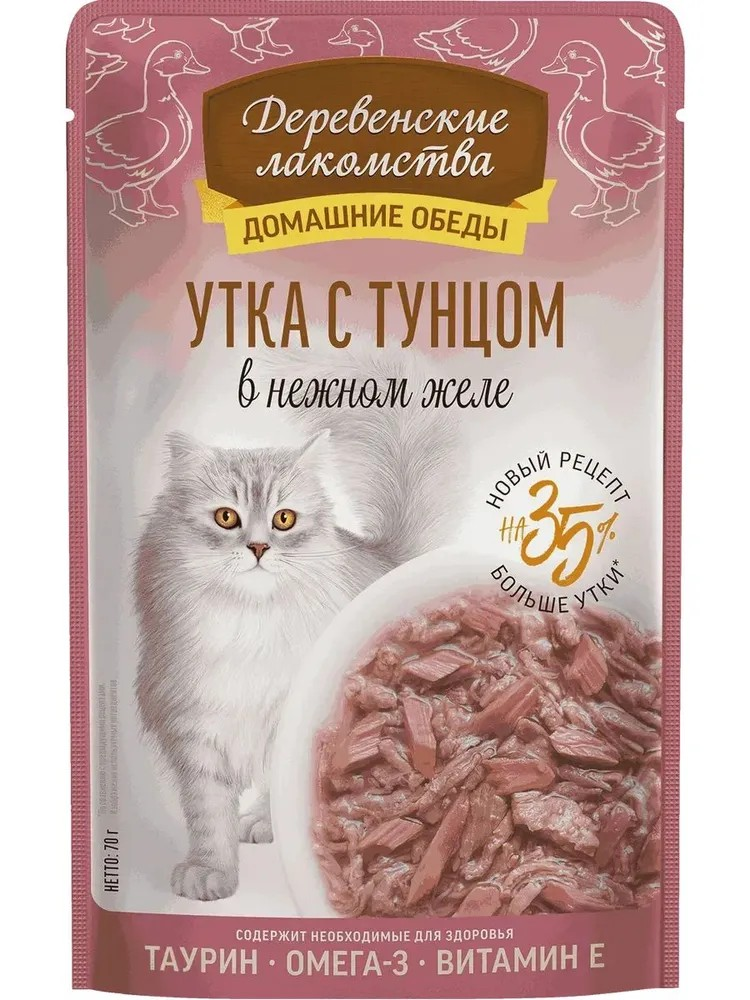 Деревенские лакомства корм для кошек Утка с Тунцом желе, 70 г