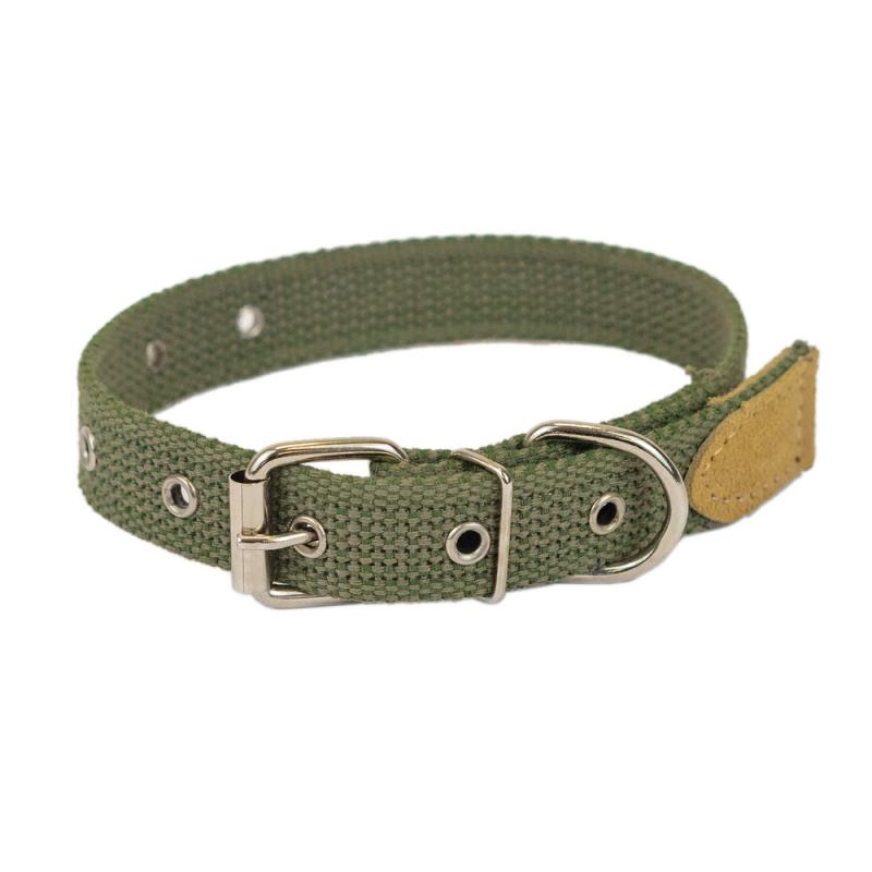 Ошейник для собак из натуральной хлопчато-бумажной ленты, не вызывающей аллергических реакций как у людей, так и у животных. Большой диапазон регулировки позволяет легко подобрать нужный размер для комфортного ношения. Собранный на современном швейном оборудовании с использованием прочных обувных ниток ошейник не только прочнее аналогичных изделий, собранных на заклёпках и грубых кожаных накладок, но и выглядит гораздо эстетичнее за счёт сочетания оригинальной фактуры самой ленты и швейной строчки.