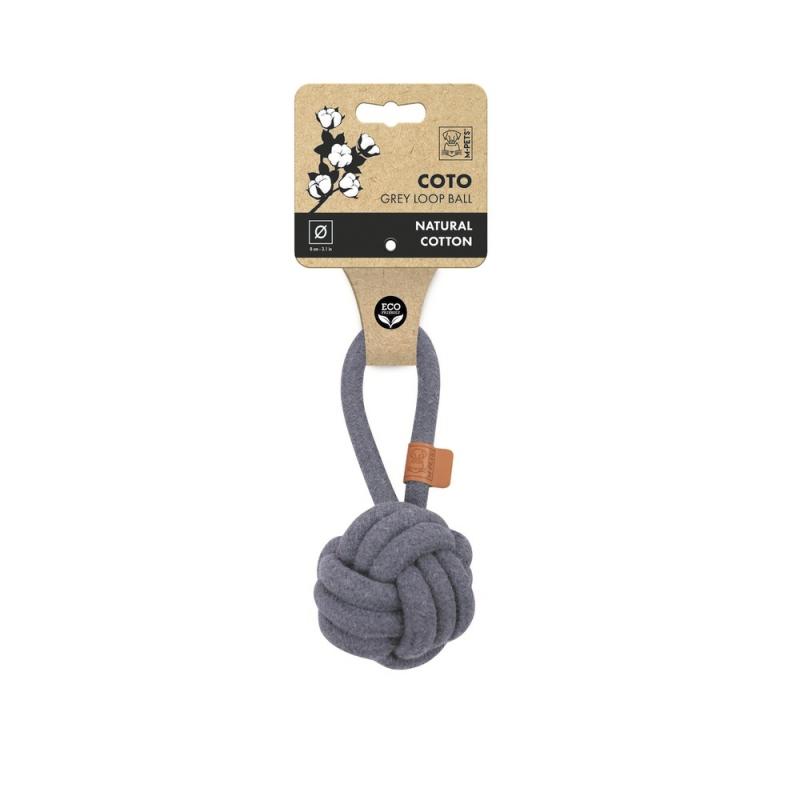 Игрушка мяч-петля СОТО LOOP BALL — идеальный выбор для вашего питомца. Мягкая и безопасная игрушка изготовлена из натурального хлопка, который не вызывает аллергии и благоприятно влияет на зубы и дёсны собаки. Удобная форма позволяет собаке легко захватывать мяч зубами и играть с ним.