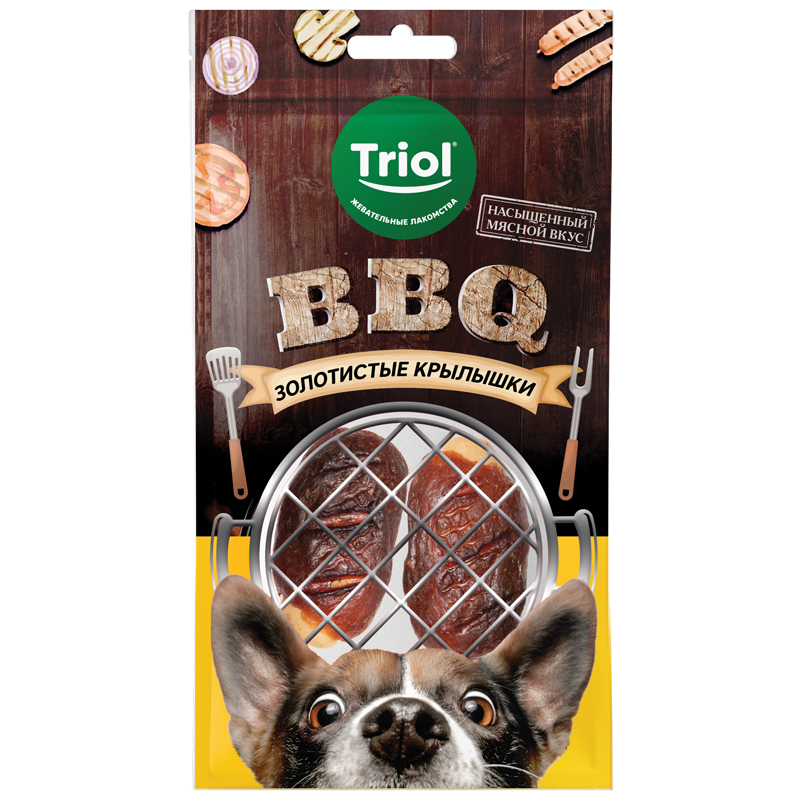 Поджаренные на открытом огне сочные и аппетитные крылышки BBQ – классика вкуса на любом пикнике. Это по-настоящему вкусное блюдо становится излюбленным для каждого, стоит лишь однажды его попробовать. Неповторимый пикантный вкус мяса с дымком доступен теперь для четвероногих гурманов со сбалансированным составом и в оптимальной форме. Входящая в состав лакомства рисовая мука является натуральным источником энергии и жизненных сил, насыщает организм вашего питомца важными микроэлементами, укрепляет кости и сосуды, а мясо птицы обеспечит витаминами группы B, полезными для сердца и иммунитета. Так много пользы и удовольствия в одной упаковке! Вес нетто: 100г.