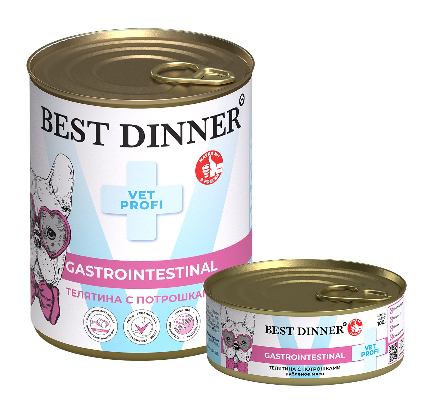 Рубленое мясо для собак с чувствительным пищеварением. Среди всех видов мяса, ценных для собаки, телятина может занимать первое место: она богата протеинами, многочисленными витаминами и аминокислотами, в ней практически нет жира. Именно поэтому ее рекомендуют для кормления щенков и беременных, кормящих животных. Потрошки - ценный источник животного белка и важнейших микроэлементов. Инулин – природный пребиотик, стимулирующий выработку полезных микроорганизмов. Юкка Шидигера выводит токсины из организма. Дрожжи полезны для кожи и шерсти, работы желудка и кишечника, укрепляют иммунитет. Рыбий жир является источником энергии и Омега-3 жирных кислот. Позаботьтесь о здоровье любимца вместе с Best Dinner!