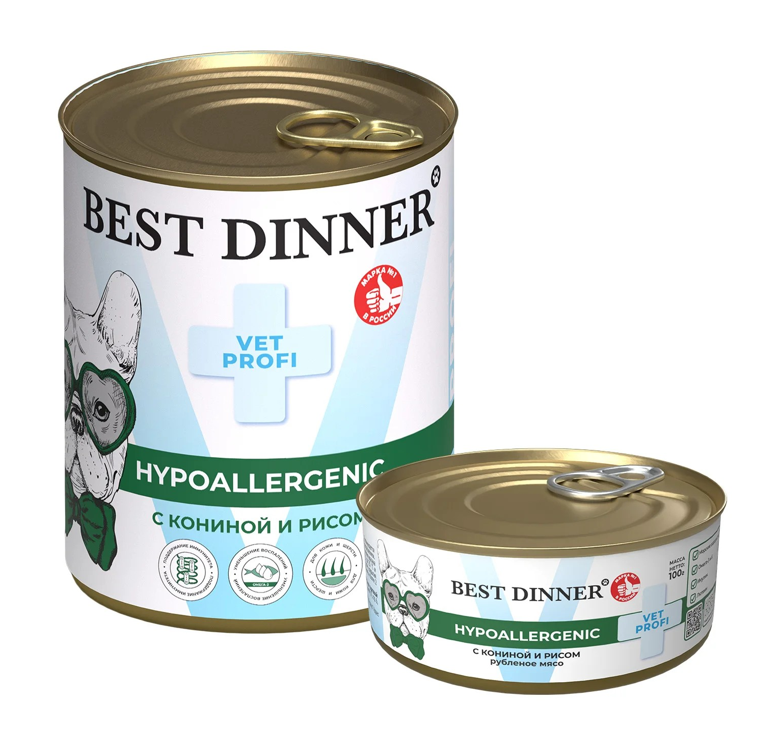 Best Dinner Exclusive Hypoallergenic С кониной и рисом консервы для щенков и взрослых собак всех пород