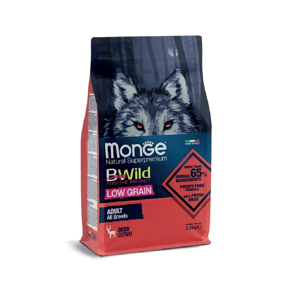 Monge BWild Dog Adult Deer - это сбалансированный полнорационный корм из мяса оленя для взрослых собак всех пород.