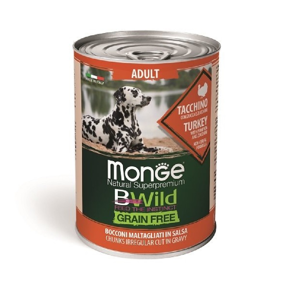 Monge Dog BWild Grain Free консервы из индейки с тыквой и кабачками для собак всех пород 400г - это сбалансированный рацион для взрослых собак всех пород.