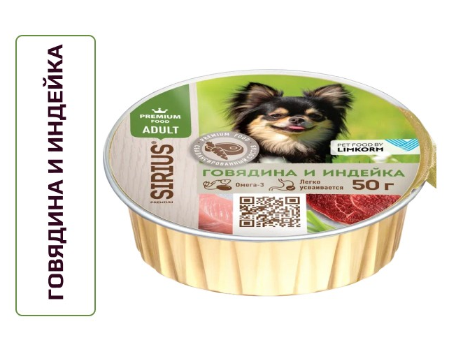 Sirius консервированный корм для собак мелких пород Говядина и индейка, 50г