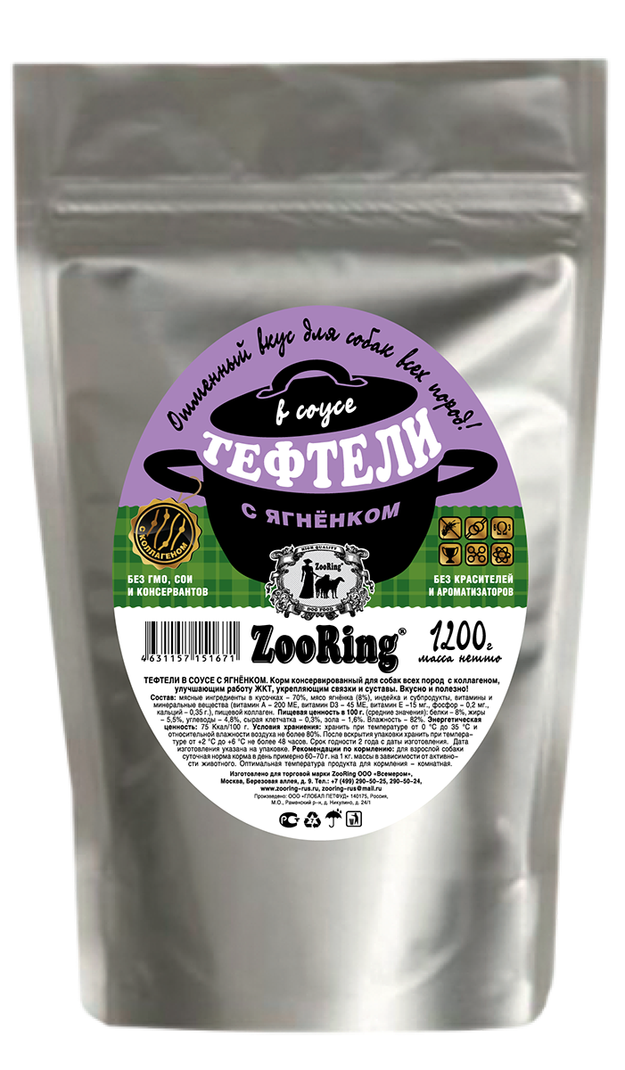 ZooRing консервы для собак тефтели Ягненок соус, 1200г