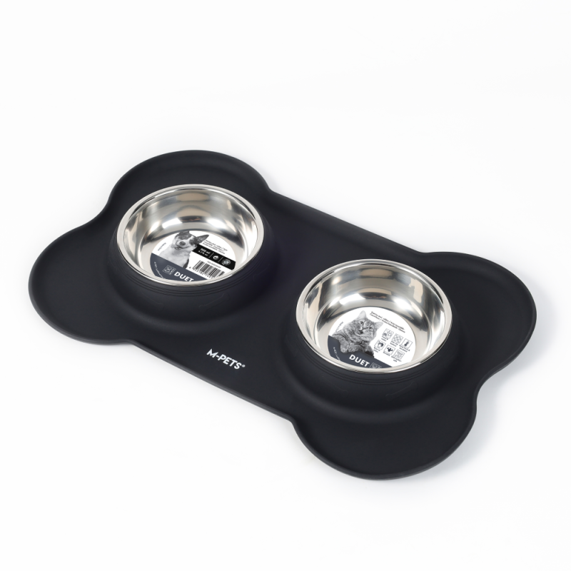 Двойная миска с силиконовым основанием M-Pets - это функциональный и удобный аксессуар для кормления питомца. Миска выполнена из нержавеющей стали, а нескользящий силиконовый коврик обеспечит устойчивость и предотвратит скольжение по полу. Подходит для воды и корма, две удобные емкости объемом 200 мл каждая позволят комфортно разместить еду и воду для вашего любимца.