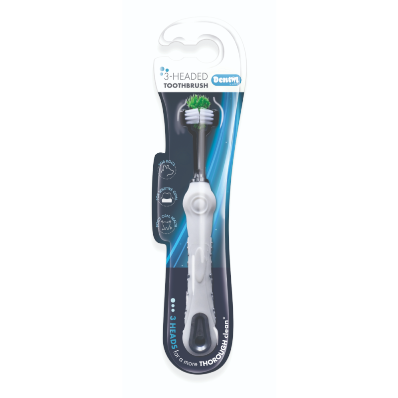 ДЭта зубная щетка для собак специально разработана для животных с чувствительными деснами. Специальная функция-3 головки обеспечит животному более тщательную чистку. Щетка изготовлена из высококачественных материалов и разработана, таким образом, чтобы максимально соответствовать анатомическим особенностям ротовой полости собаки, что делает ее использование более удобным и безопасным, прежде всего для вашего любимца. Трехсторонняя конструкция щетины позволяет чистить зубы во всех направлениях. Щетка имеет длинную, удобную, текстурированную ручку, чтобы человеку было удобно ее держать, чтобы она не выскальзывала из руки во время проведения процедуры. Также на ручке есть специальное отверстие, которое позволяет повесить щетку на крючок, что делает ее хранение более простым. Зубная щетка с 3 головками очищает одним движением, быстрее и более эффективно, со всех сторон зубов вашей собаки, борется с налетом и зубным камнем, освежает дыхание и улучшает здоровье полости рта.