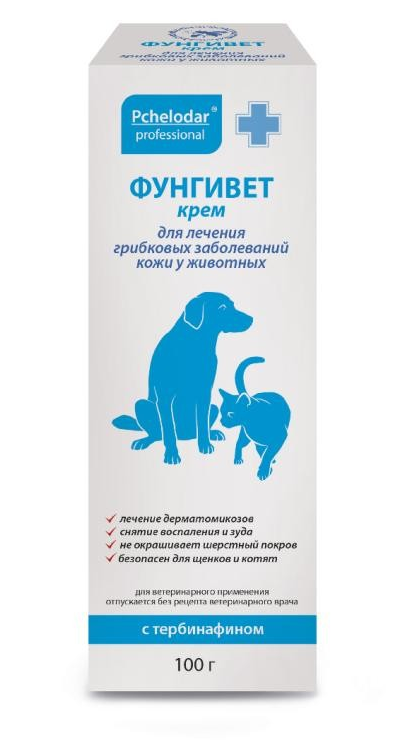 Фунгивет крем обладает широким спектром противогрибковой активности, противовоспалительным и ранозаживляющим действием на кожный покров животного.