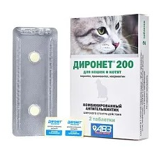 ДИРОНЕТ® относится к комбинированным антигельминтным лекарственным препаратам широкого спектра действия. Комбинация входящих в состав препарата действующих веществ обеспечивает широкий спектр его антигельминтного действия на все фазы развития круглых и ленточных гельминтов, паразитирующих у кошек, в том числе Toxocara canis, Т. cati, Toxascaris leonina, Uncinaria stenocephala, Ancylostoma caninum, Trichuris vulpis. Echinococcus granulosus, E. multilocularis, Diphyllobothrium latum, Dipylidium caninum, Multiceps multiceps, Taenia spp., а также личиночных фаз развития (микрофилярий) Dirofilaria immitis и D. repens.