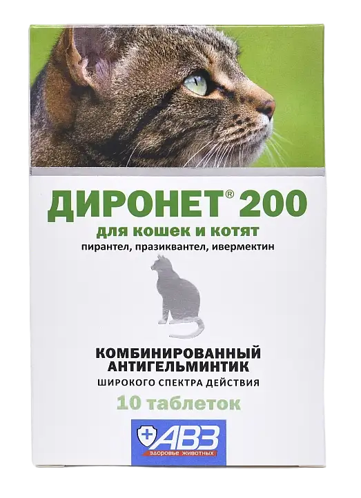 ДИРОНЕТ® относится к комбинированным антигельминтным лекарственным препаратам широкого спектра действия. Комбинация входящих в состав препарата действующих веществ обеспечивает широкий спектр его антигельминтного действия на все фазы развития круглых и ленточных гельминтов, паразитирующих у кошек, в том числе Toxocara canis, Т. cati, Toxascaris leonina, Uncinaria stenocephala, Ancylostoma caninum, Trichuris vulpis. Echinococcus granulosus, E. multilocularis, Diphyllobothrium latum, Dipylidium caninum, Multiceps multiceps, Taenia spp., а также личиночных фаз развития (микрофилярий) Dirofilaria immitis и D. repens.