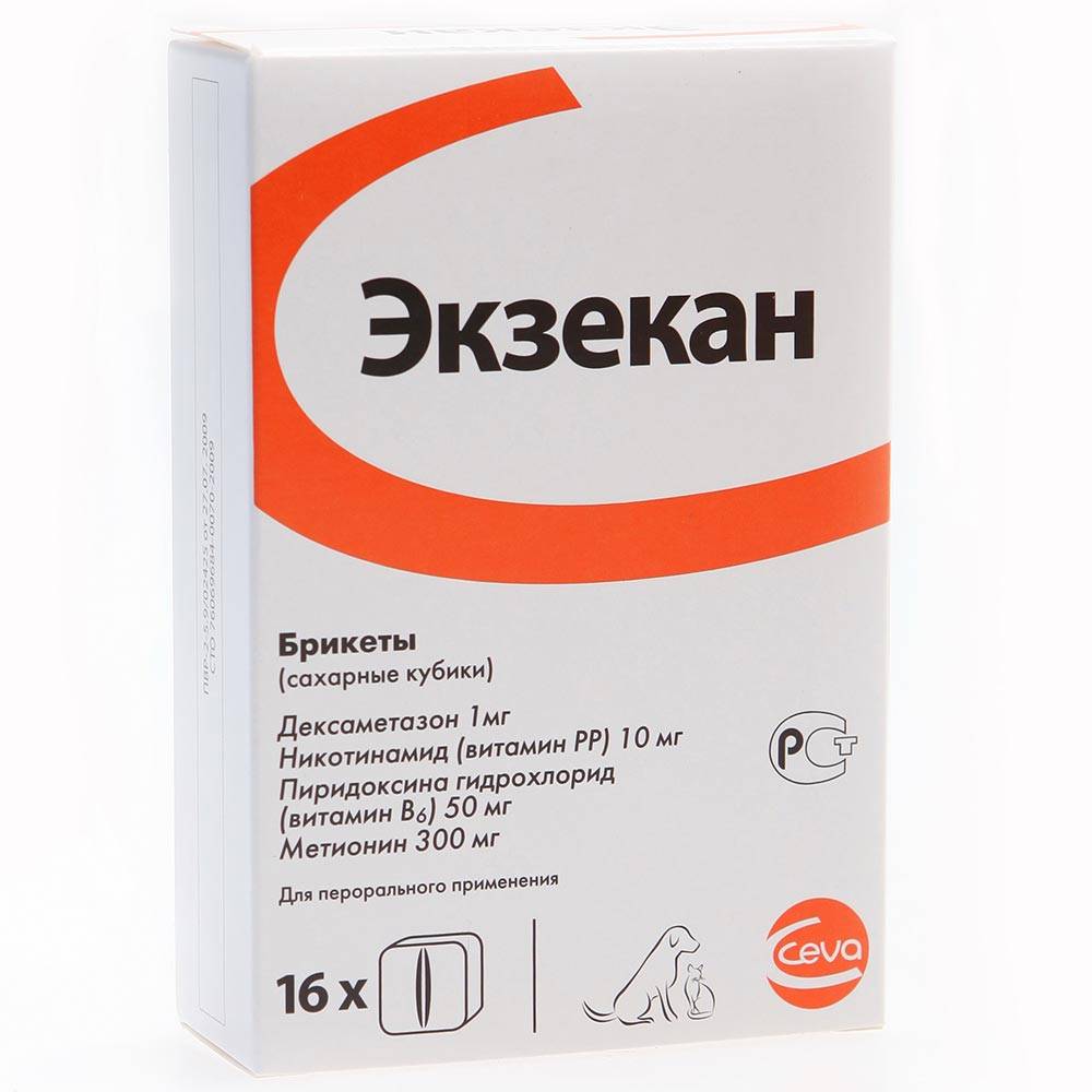 Экзекан относится к гормональным противовоспалительным препаратам. Препарат обладает выраженным противовоспалительным действием, способствует нормализации обмена веществ, улучшает детоксицирующую функцию печени, состояние кожно-волосяного покрова у животных, устраняет зуд.