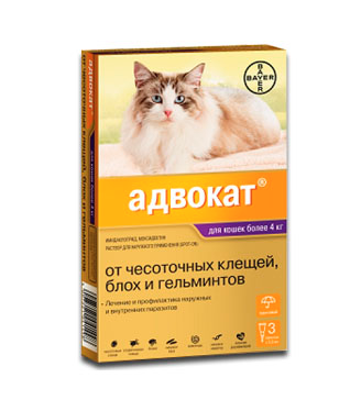 Адвокат® кошки – комплексный препарат компании Elanco, который помогает защищать вашего питомца от широкого спектра внешних (блох, чесоточных клещей) и внутренних (глистов) паразитов.