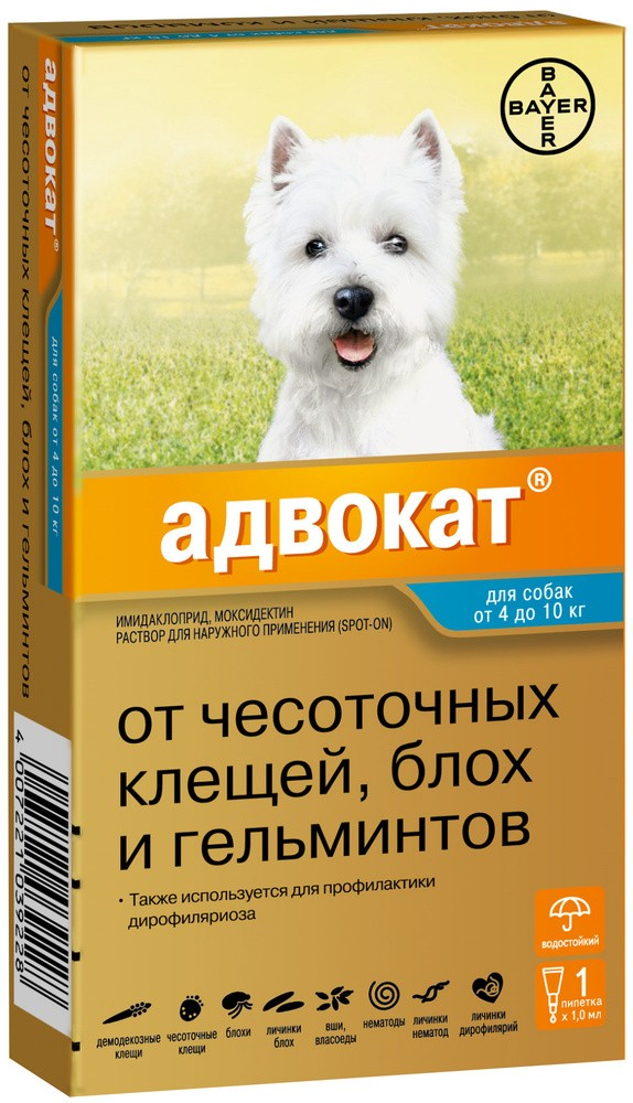 Адвокат – комплексный препарат компании Elanco, который помогает защищать вашего питомца от широкого спектра внешних (блох, чесоточных клещей) и внутренних (глистов) паразитов.