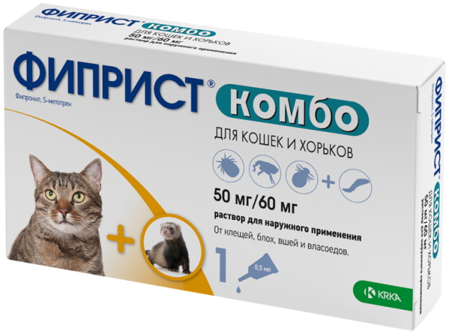 KRKA Фиприст Комбо Капли на холку д/кошек и хорьков от блох и клещей
