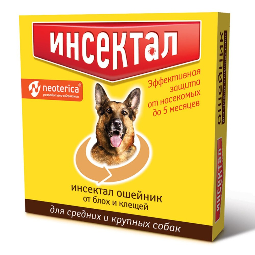 Инсектал ошейник от блох и клещей для средних и крупных собак