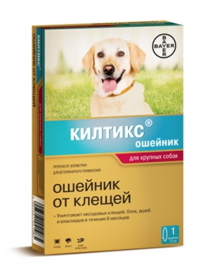 СОСТАВ И ФОРМА ВЫПУСКА Средство борьбы с эктопаразитами собак представляет собой поливиниловую ленту желтого цвета, содержащую в качестве действующих веществ пропоксур и флуметрин. Выпускают ошейник Килтикс для собак средних пород длиной 48 см, в герметично закрытых полиэтиленовых пакетах, помещенных в картонные коробки.