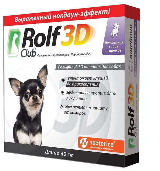 Rolf Club 3D ошейник для щенков и мелких собак от блох и клещей, 40 см