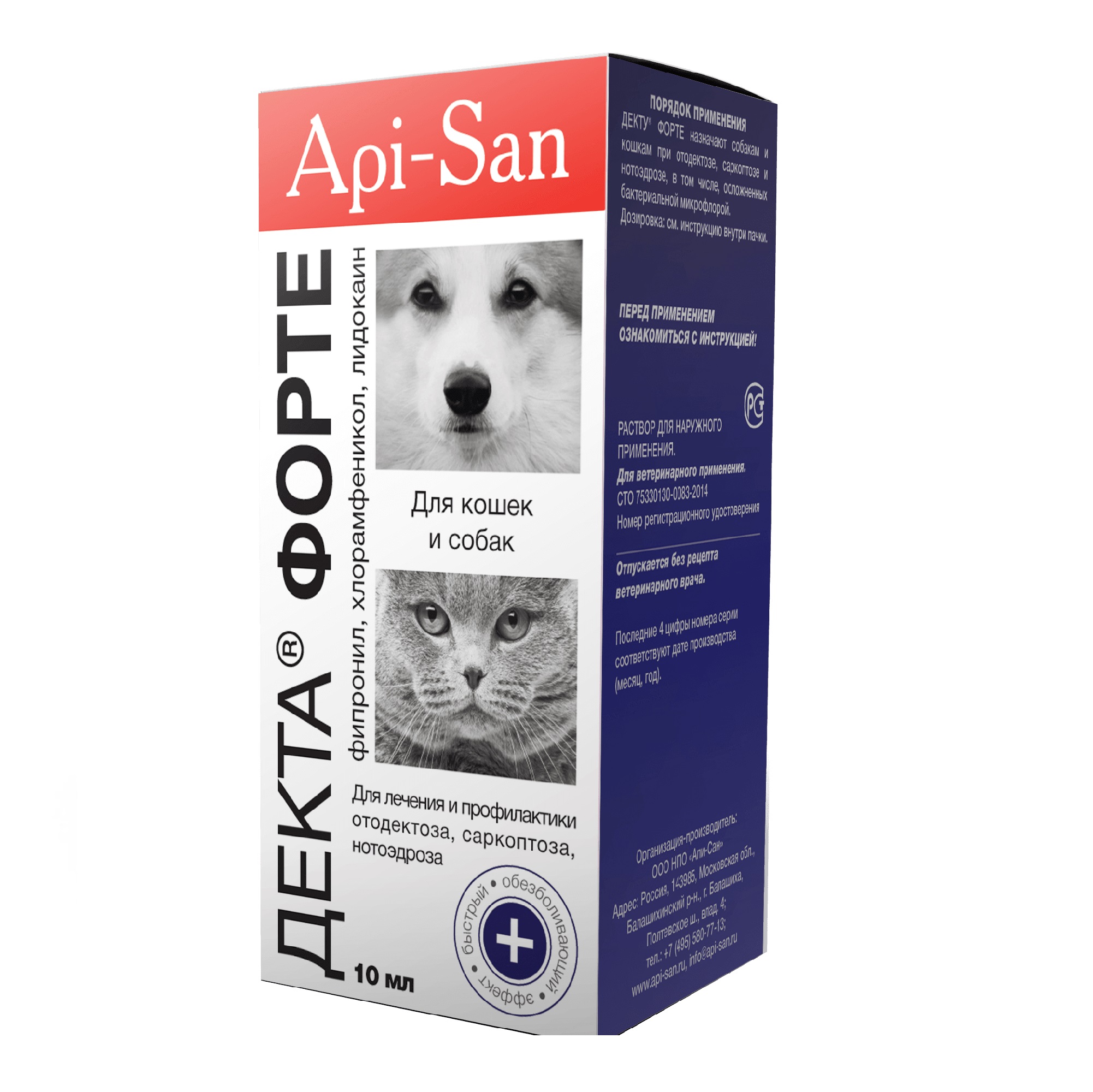 Декта — комбинированный препарат, оказывающий губительное действие на личиночные и половозрелые формы развития саркоптоидных клещей: Sarcoptes spp., Notoedres cati и Otodectes cynotis и демодекозных клещей Demodex canis, паразитирующих на мелких домашних животных. Амитраз — акарицид системного и контактного действия, который блокирует октоп
