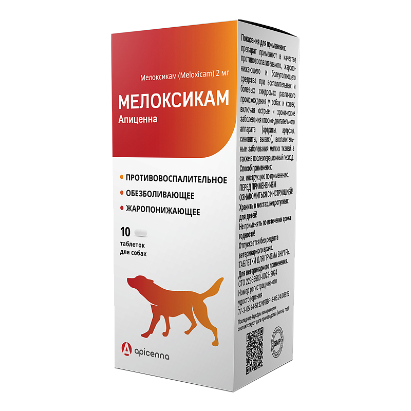 Apicenna Мелоксикам 2 мг для собак, 10 табл по 240 мг (в банке)