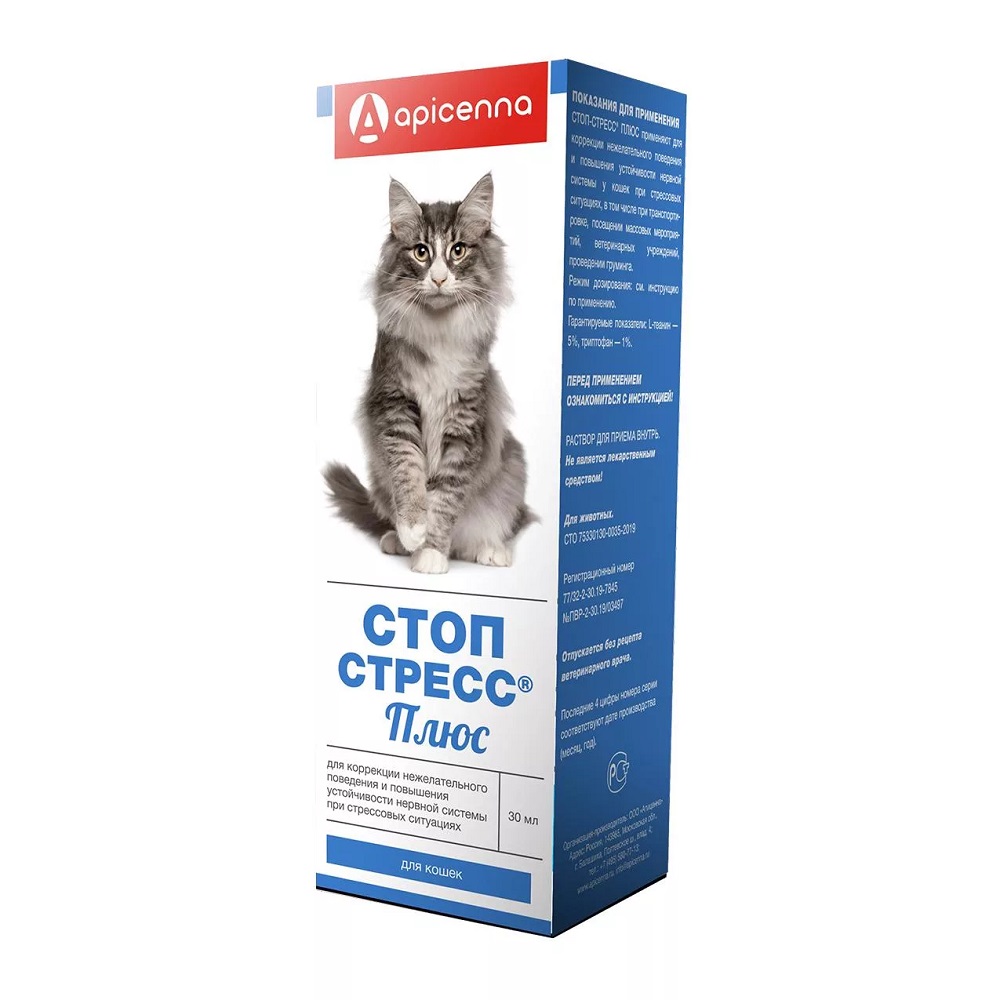 1. Стоп-стресс Плюс (Stop-stress Plus) — кормовая добавка для коррекции нежелательного поведения и повышения устойчивости нервной системы у кошек и собак при стрессовых ситуациях.